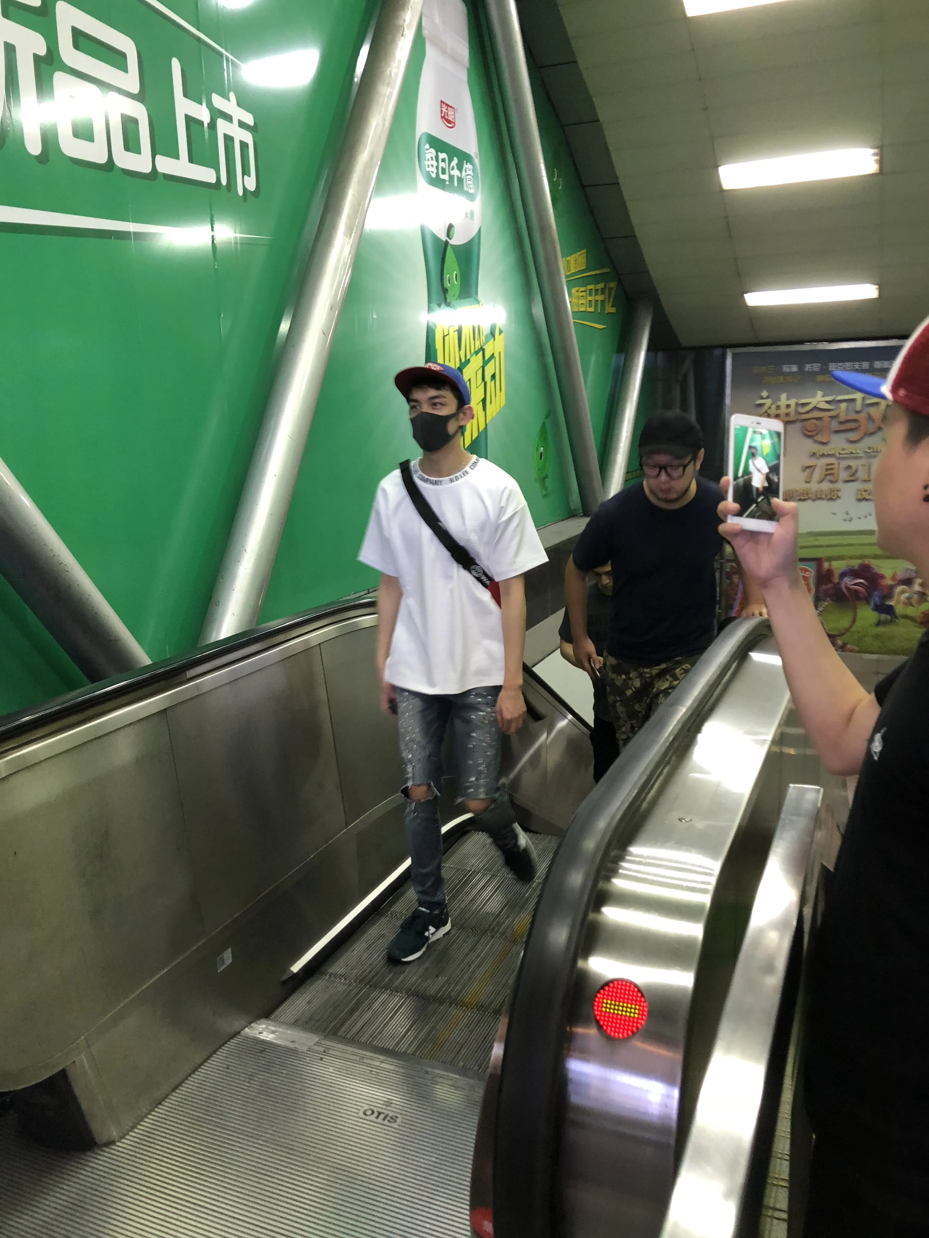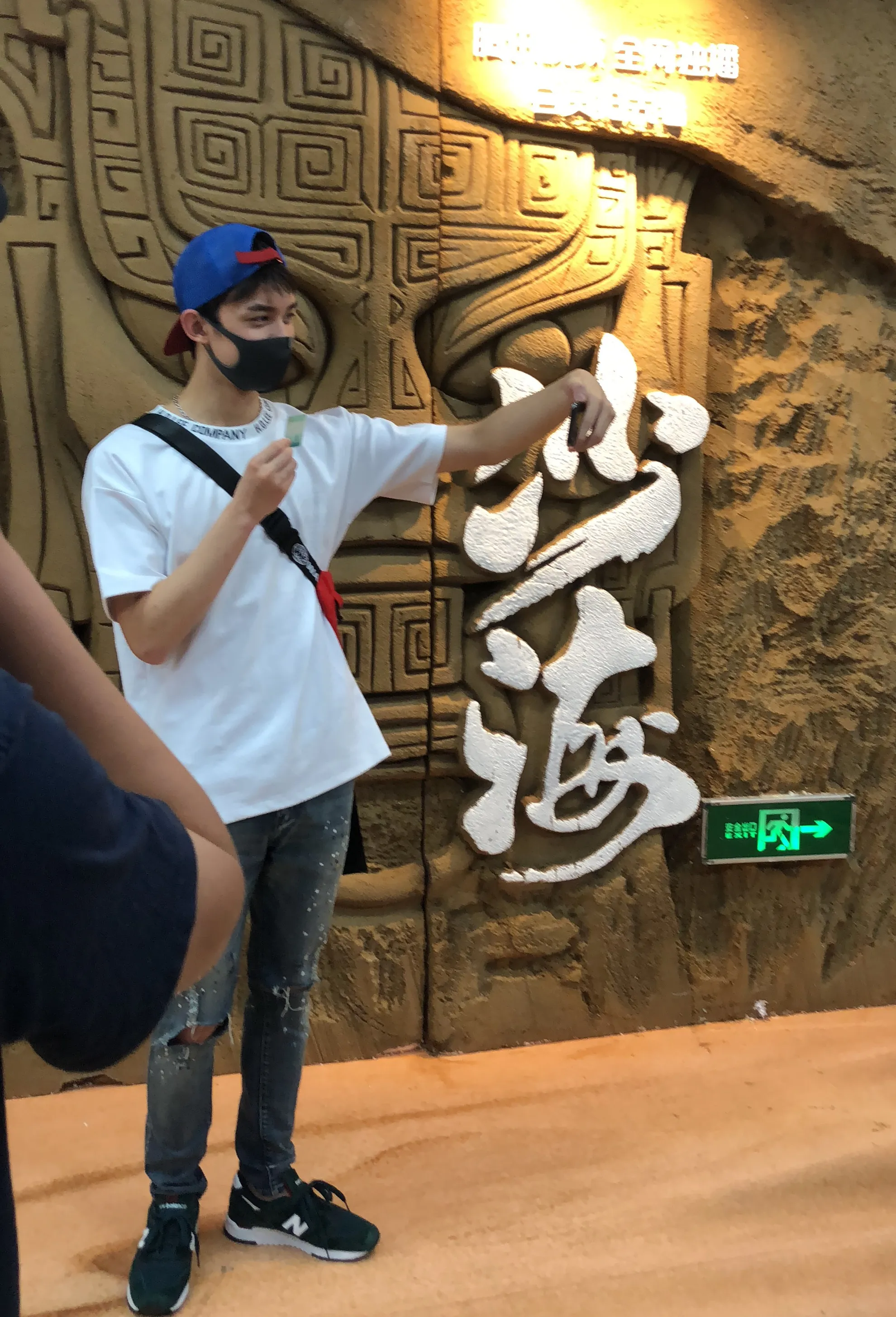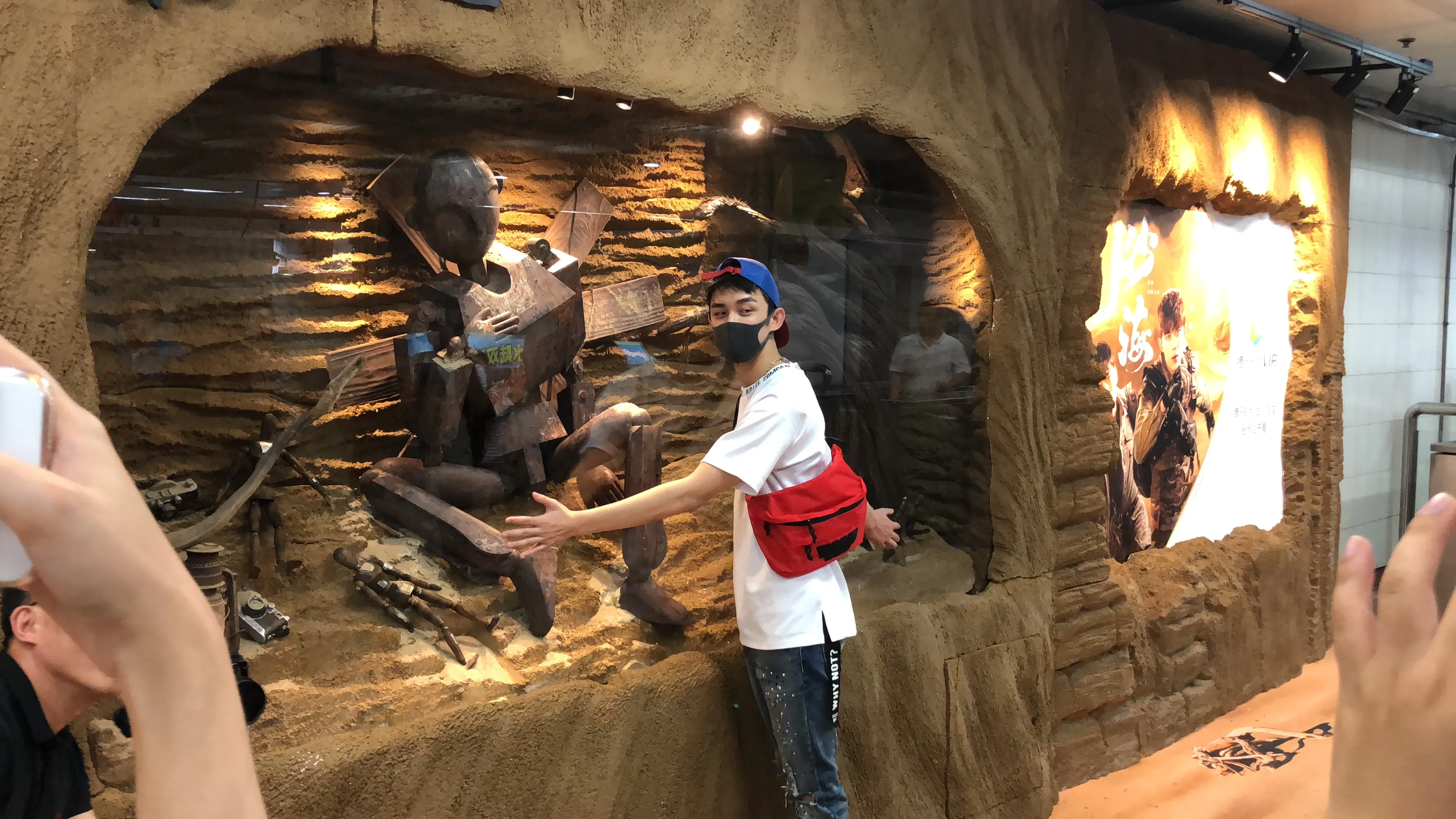 到达地铁站内的《沙海》体验空间之后,吴磊开心地摆着不同的pose和各个橱窗合影,还手拿地铁卡和体验区自拍,看上去心情大好。